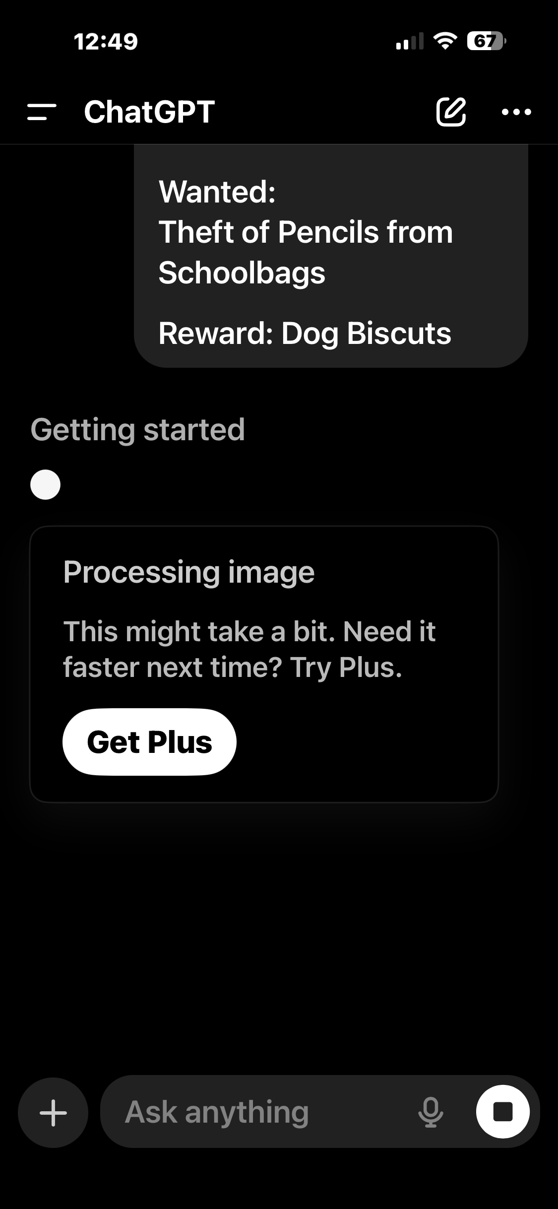 ChatGPT screen shot informing the user that it’s aware this is taking time, but it will be faster if the user pays for a Plus plan