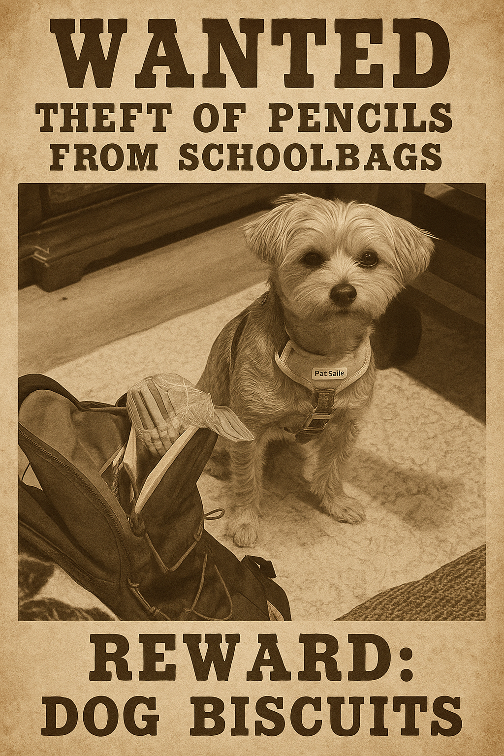 Prompt: Make this photo sepia tone and make it look like a mug shot with text styled to look like a Wild West wanted poster with the words: