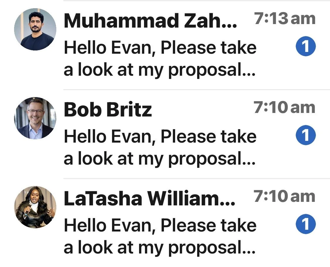 How quickly can the LinkedIn team recognize and mitigate these obvious, repeated patterns? If AI is being used to automate these attacks, LinkedIn must be equally aggressive in using AI tools to recognize the obvious patterns of repeat inbox attacks that they can use to automate protections for its users.